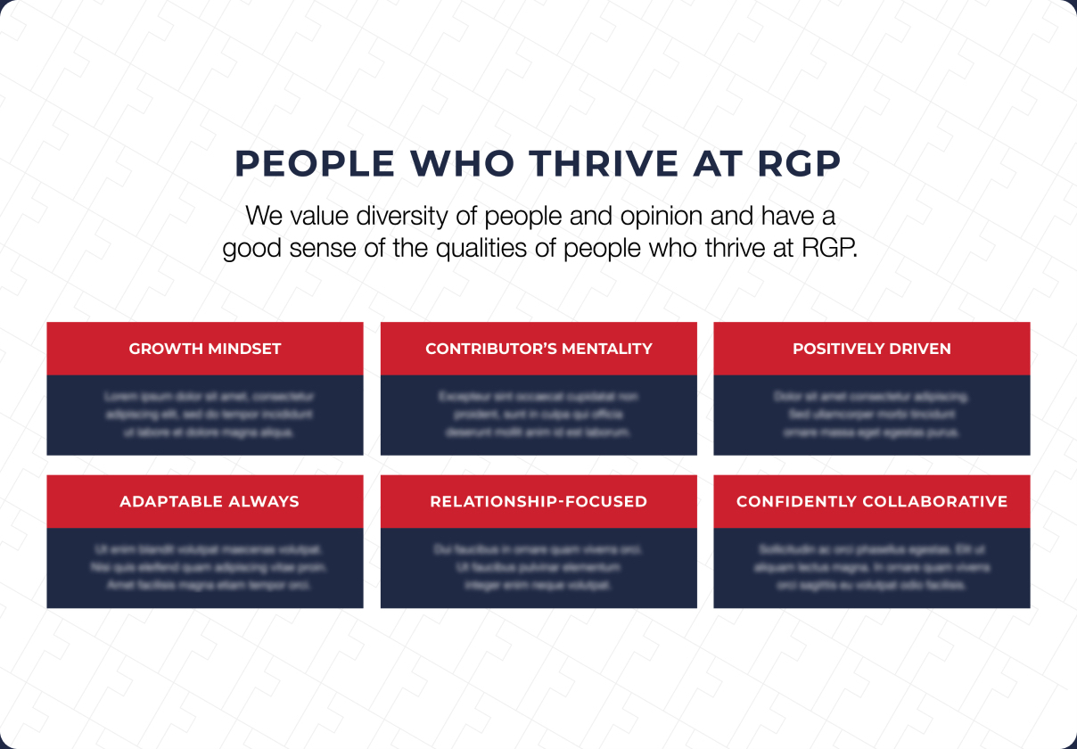 As a consulting firm, employees are the product at RGP. We helped them create an employer brand that spoke to the unique experience at RGP. and helped to attract and maintain top-tier talent.